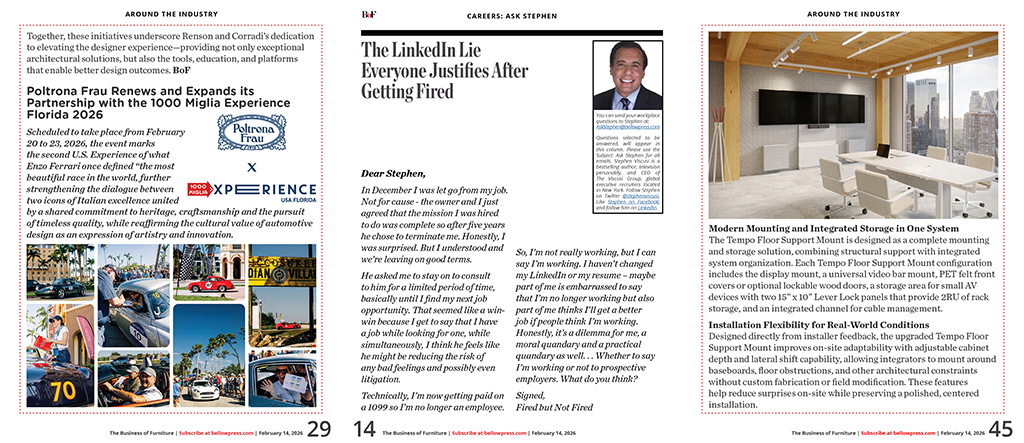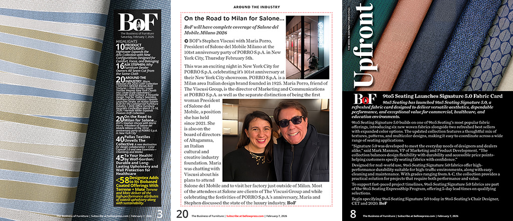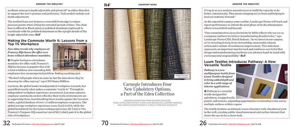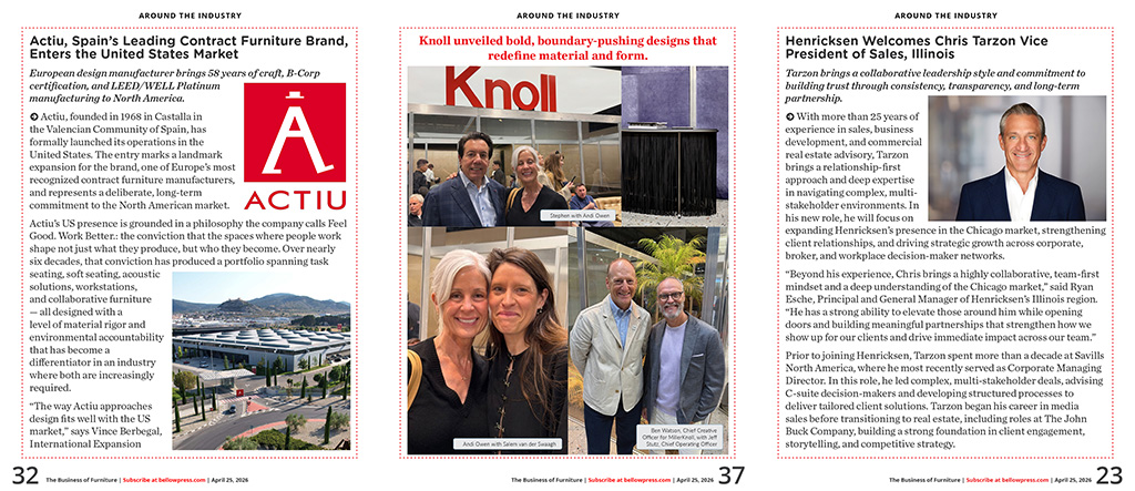 Focused exclusively on the contract furnishing industry, a singular source of strategic and practical information on selecting, deploying and managing interior furnishings.