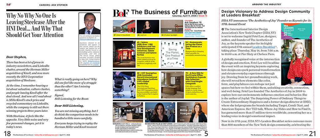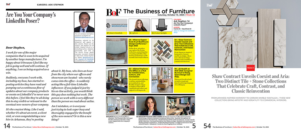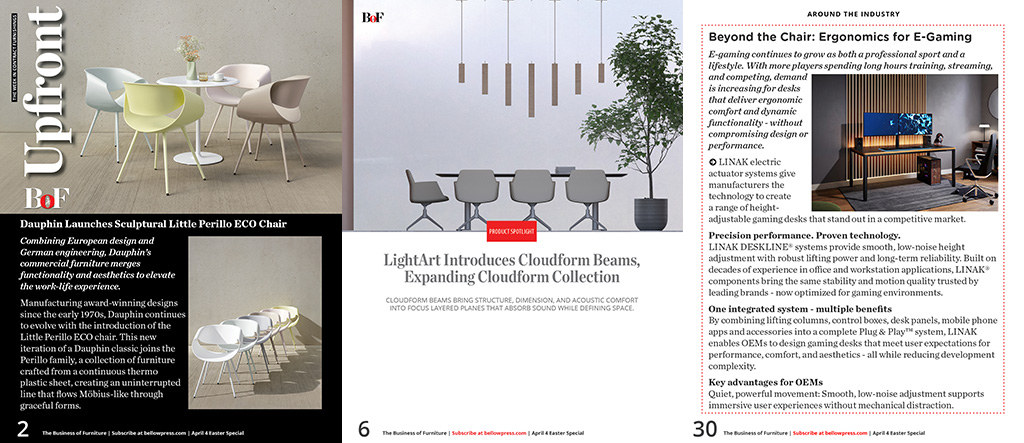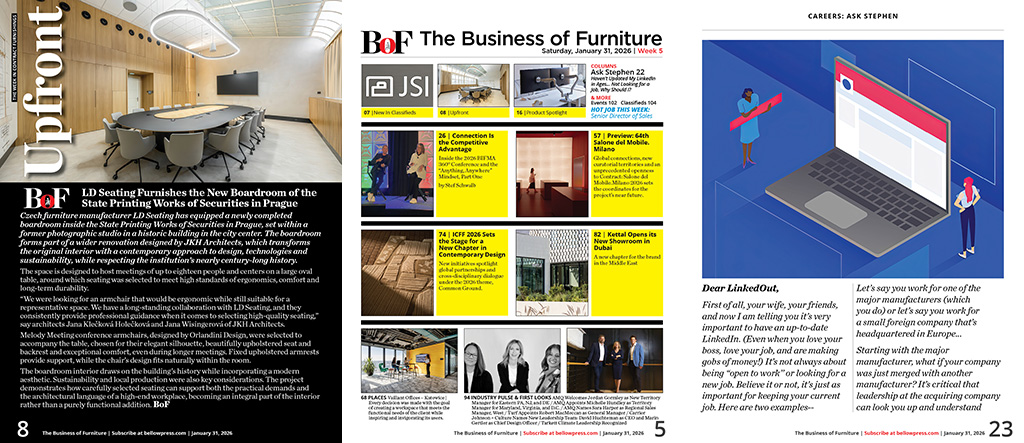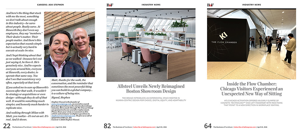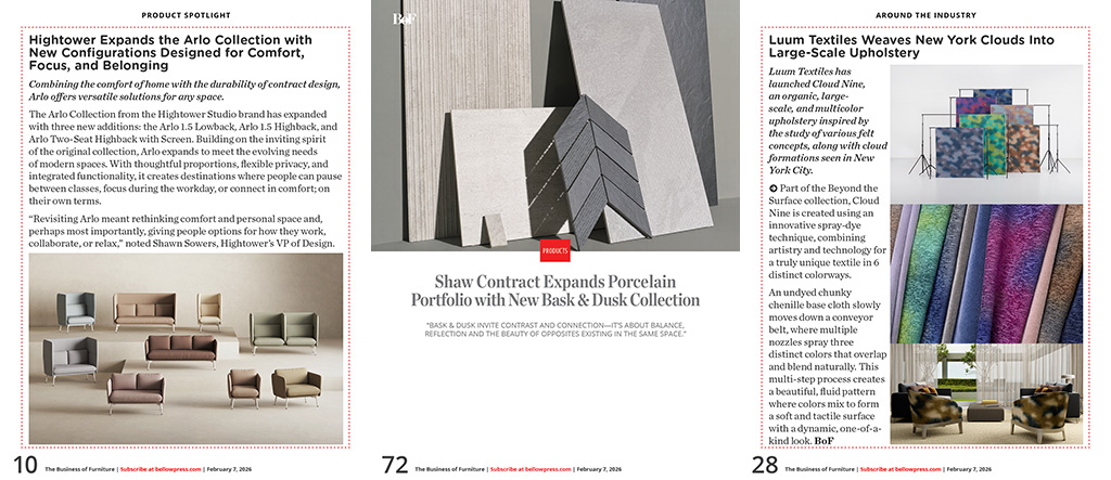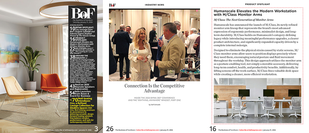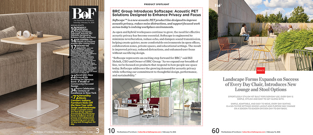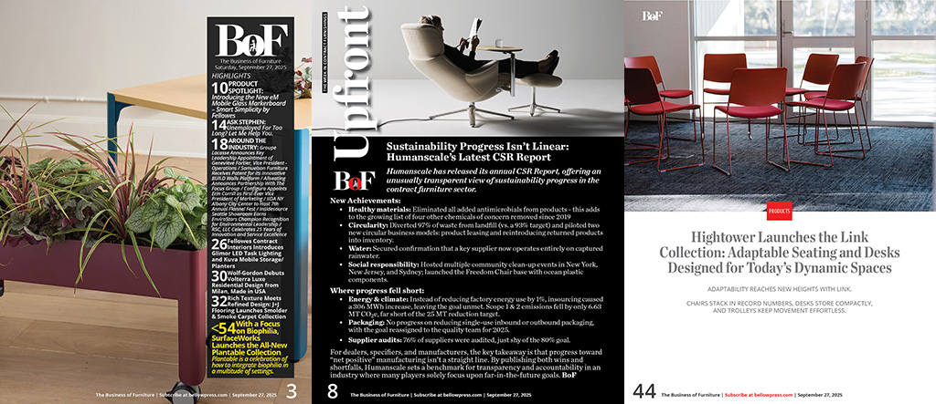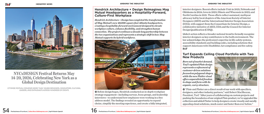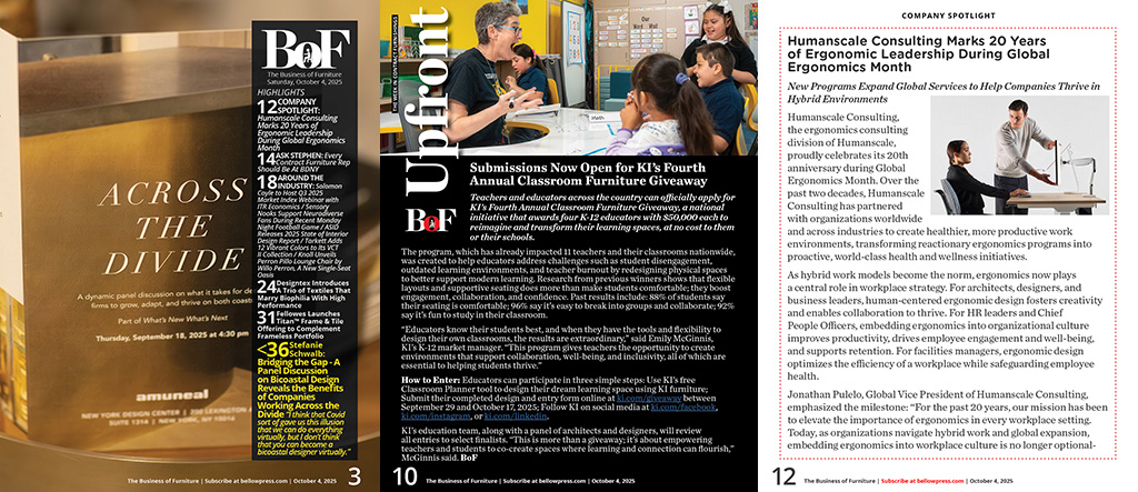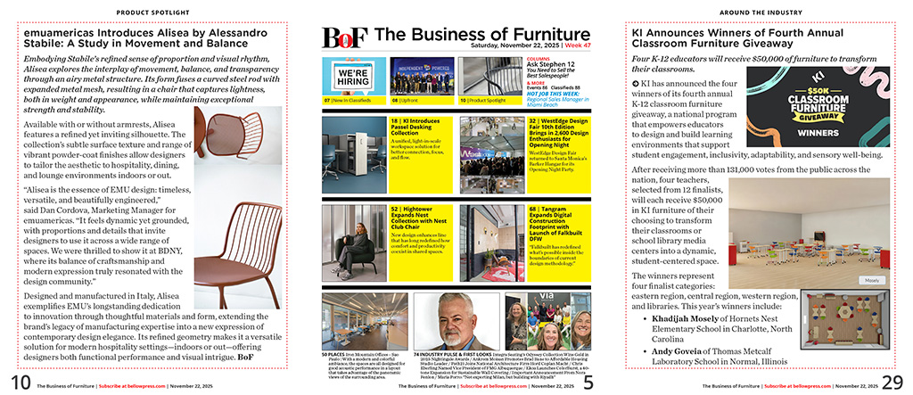 Focused exclusively on the contract furnishing industry, a singular source of strategic and practical information on selecting, deploying and managing interior furnishings.